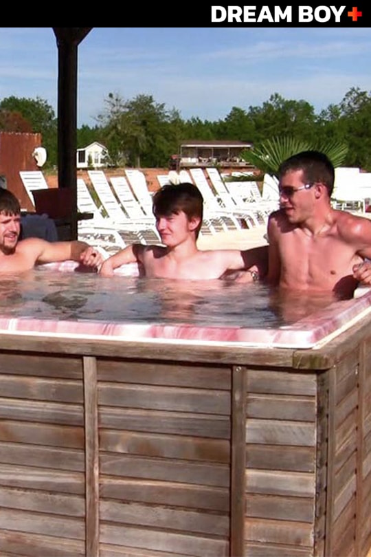 Twink boy Donnie is enjoying some time in the hot tub, thinking about his ass getting plowed by a hot guy. A few moments later, three older boys jump into the hot tub and grab him by the arms and legs. Spreading his hole open over the side of the tub, Troy and Nick both shove their dicks into Donnie's little hole. He screams for them to stop, but Jackson quickly stuffs his dick down the Donnie's throat, gagging his cries for help. As the boys force-fuck Donnie's tight hole, he starts to push back, bucking back and forth on the dicks that invade him.