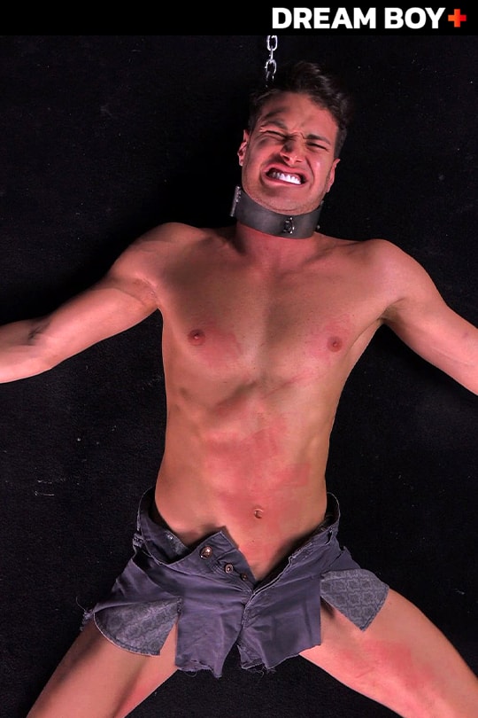 Luca lies half-asleep on his stomach, his naked body spread-eagled to the corners of the torture table, his firm ass trembling in anticipation. “Time to wake up, Luca!” Jared says, slapping the boy’s face. Then Jared really lays into Luca’s ass with the whip, turning it bright red and sending the boy into spasms of pain. ”Why do you do this to me,” the boy says in broken English, but Jared is just getting started. He rings Luca’s luscious ass with dozens of nasty clothespins, then whips his ass – and his feet! An hour later, Jared pulls the pins off, causing even more pain. “Oh, no, not again,” Luka says when he sees the hard-rubber dildo on a spike. This time the fucking is even more brutal – combined with simultaneous whipping.
