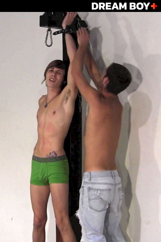 Anthony has been casing one of the nicer homes in the neighborhood for weeks now. One day, after noticing the pickup truck usually parked outside is gone, Anthony gains enough courage to break in. Little does he know that Aiden is actually home – and has a basement full of whips and chains! As a matter of fact, Aiden can’t believe his luck; its like a bondage slave special delivery. "I just needed some money, man,” Anthony tries to explain. But strong, young Aiden doesn't want to hear it. He grabs the skinny burglar, binding him by his wrists to his favorite bondage pole, then grabs his favorite crop. "What are you doing?" Anthony asks, trembling with fear. "You'll find out!" Master Aiden replies coldly. Then comes the punishment. With the thick concrete walls of the dungeon muffling Anthony's screams, Aiden strips his new boy toy and whips him relentlessly, turning his pale skin a dark red. "You've broken into the wrong house!" Aiden tells the boy, who’s just begun to realize how true that statement is. Next Week In The Dungeon: More Torture For Anthony…